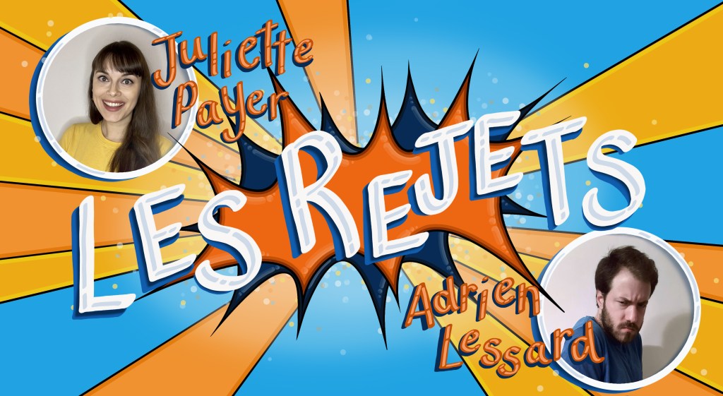 Adrien Lessard, un humoriste amer et de mauvaise humeur, et moi, autrice optimiste et beaucoup trop enthousiaste, avons animé à tour de rôle « Les Rejets »: un show live avec deux rejets, qui ont des opinions rejets et sont prêts à vivre du rejet.