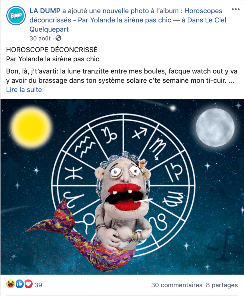 - Horoscope vulgaire: Rédaction de l’horoscope écrit par un personnage de la série chaque dimanche