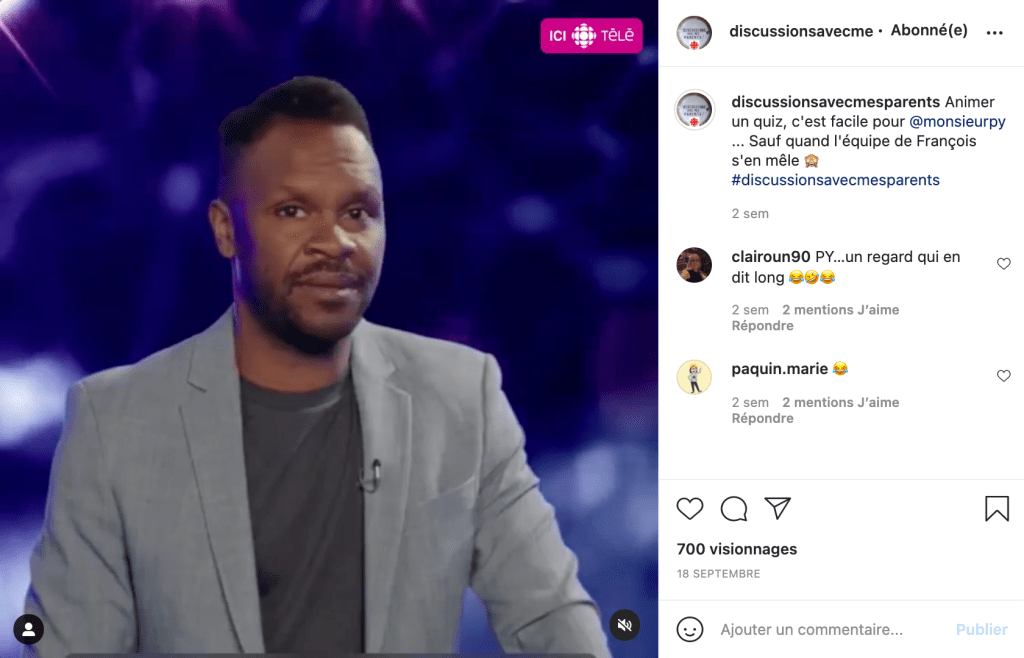 Pour les saisons 3 et 4, j’étais en charge de créer des contenus pour faire vivre l’émission humoristique Discussions avec mes parents sur les médias sociaux.